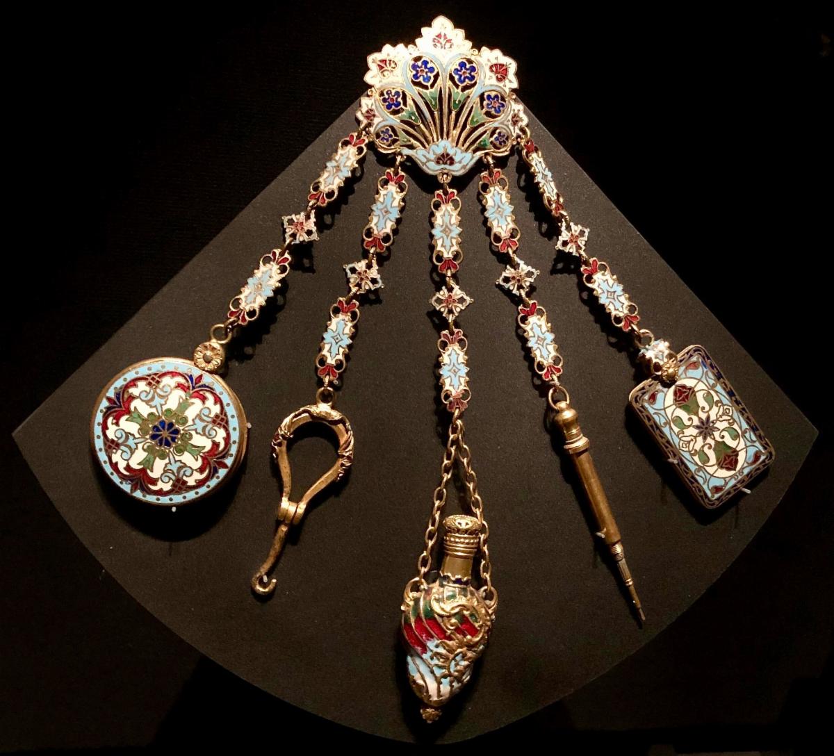 The chatelaine display in the Vault gallery at Perfume Passage includes several Victorian-era examples! | |