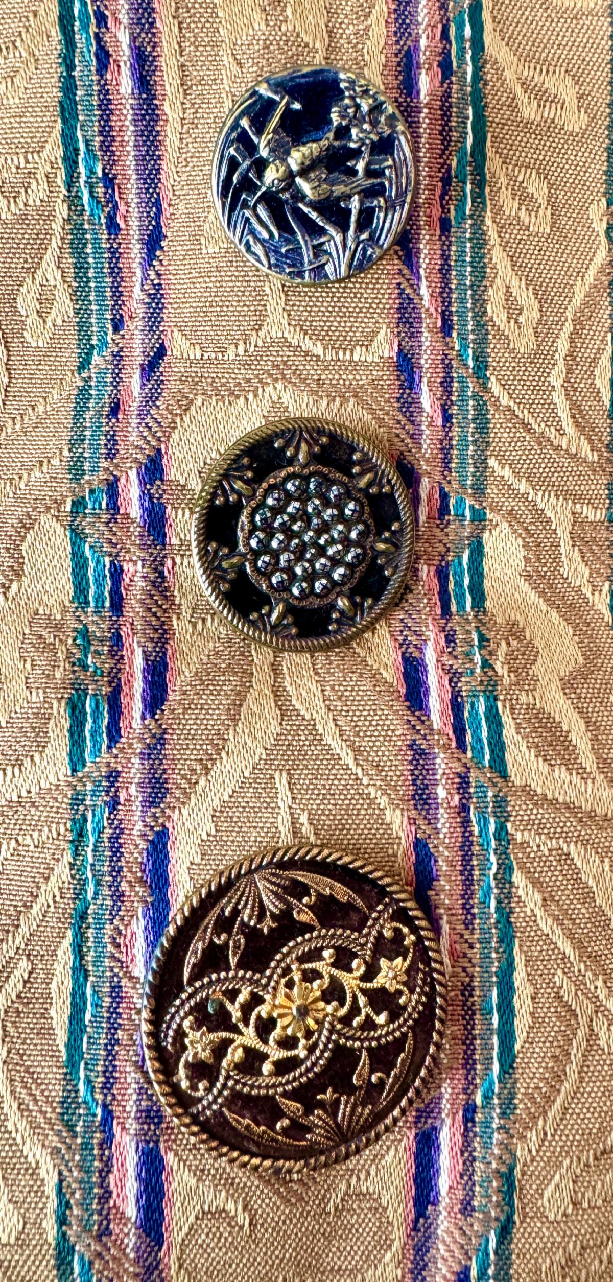 The four buttons below are smaller and were worn on a blouse, vest or short coat. | |