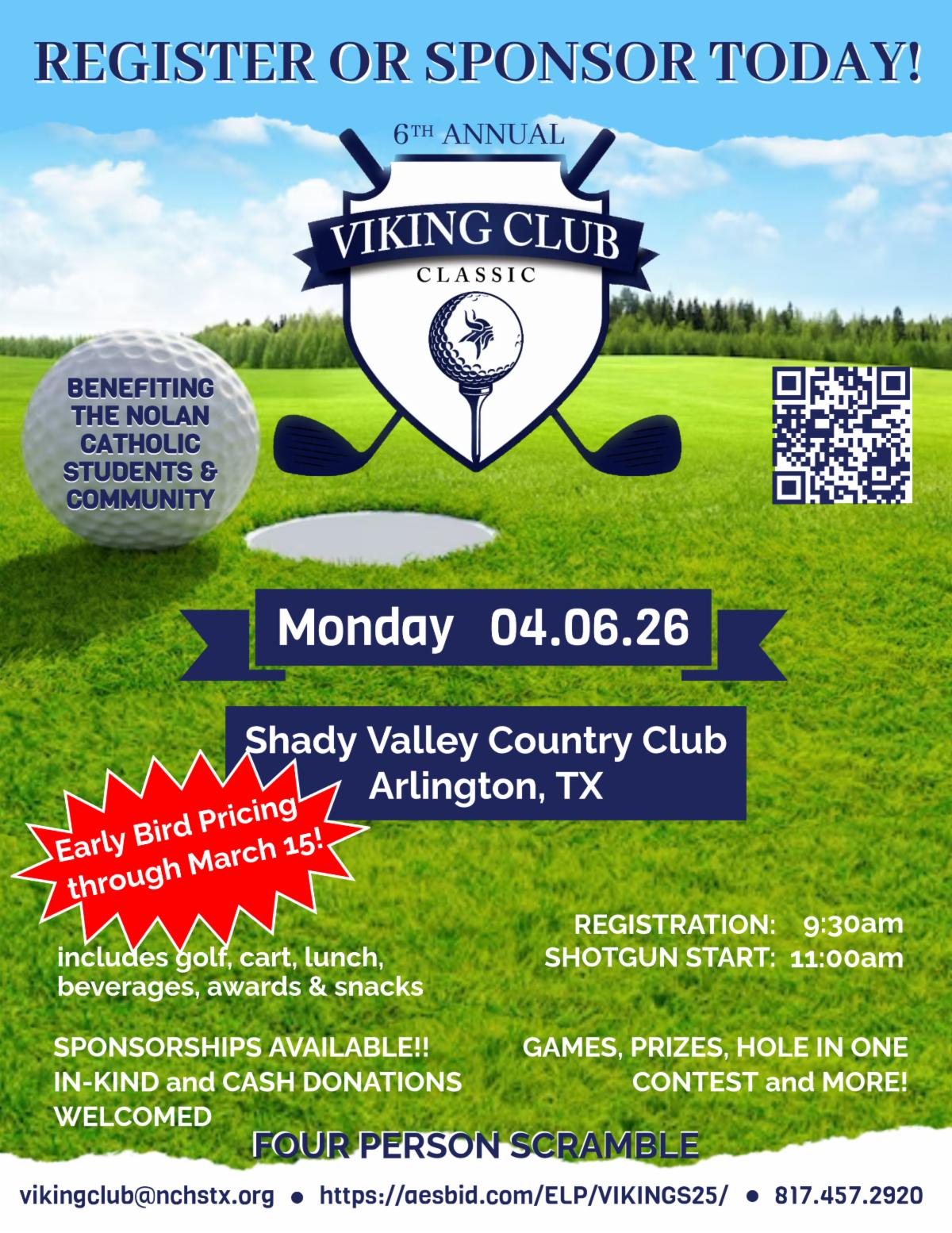 The Nolan Catholic Viking Club invites you to participate in the 6th Annual Viking Club Classic, a premier golf event benefiting Nolan Catholic students and the greater school community.