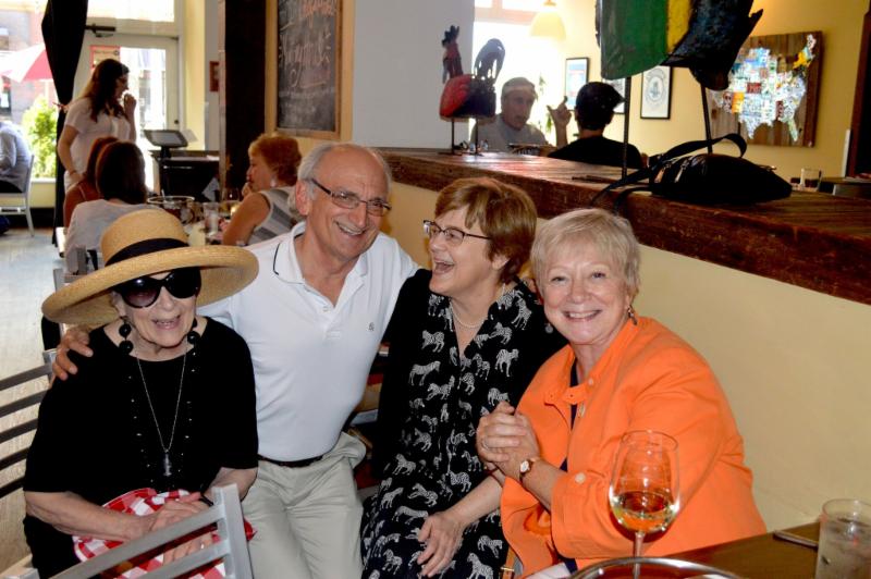 From left: members Claudette Walker, Edmund Acosta, Melody Walker and volunteer Bev Berner share a laugh at a STL Village 3rd Thursday Happy Hour