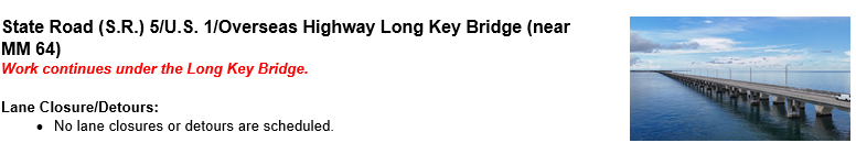 | Plantation Key Transmission Main Replacement Project Traffic and Access Update | | Sign up for Islamorada Emergency Alert Emails | | Thanks to All Who Attended Spring Fest | | |
