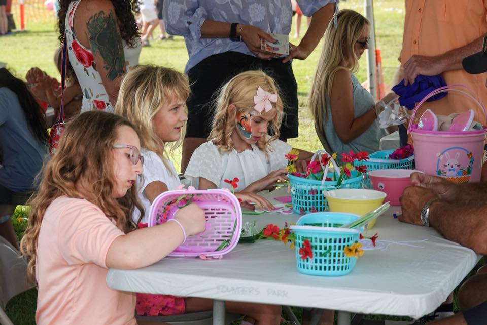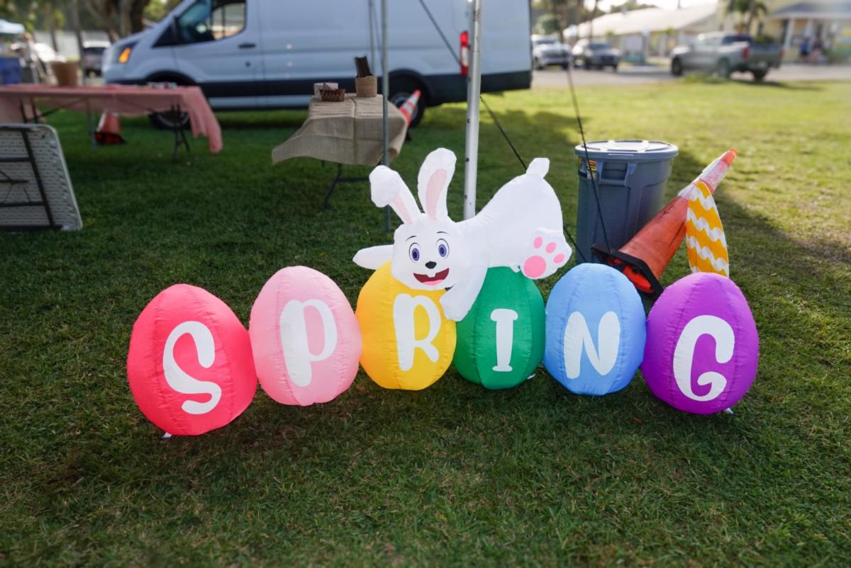 The event featured photos with the bunny, food trucks, face painting, crafts, pet adoptions, carnival activities, a floral bouquet bar, and a giant inflatable slide.