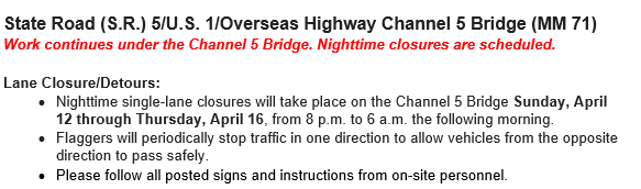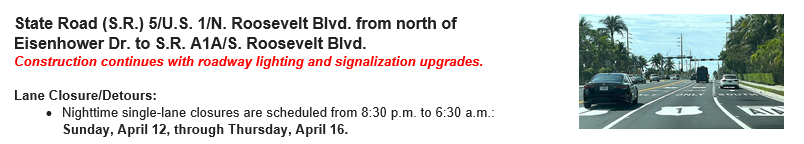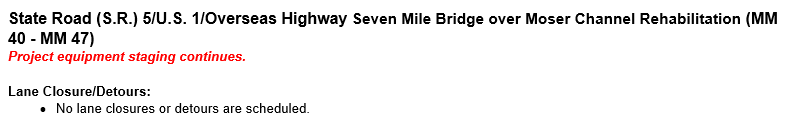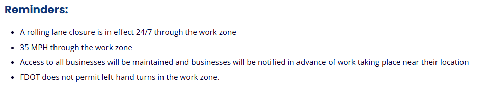 | | For real-time traffic and lane closure information, drivers are encouraged to log onto www.FL511.com, or download the FL511 app. |