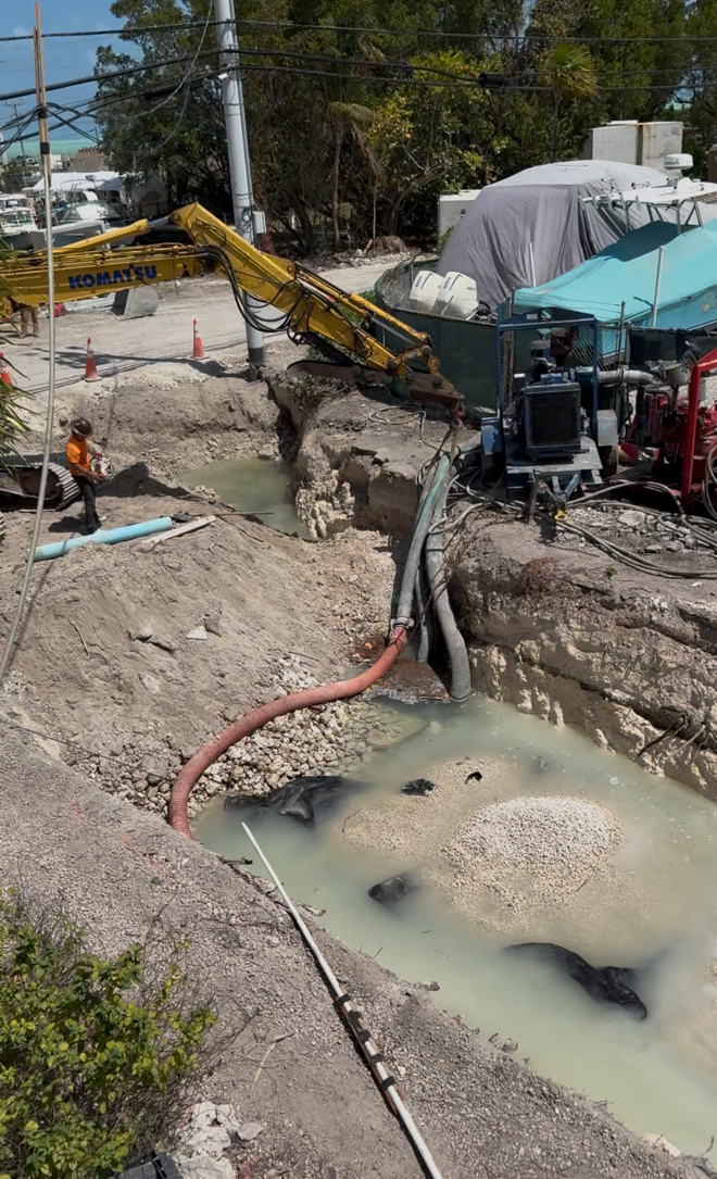 A two-month long construction project to install a culvert pipe underneath Gulfview and Lakeview Drives on Lower Matecumbe Key is nearing completion. Residents of Port Antigua have been patient as the work crew completed the section of pipe running underneath Gulfview Drive.