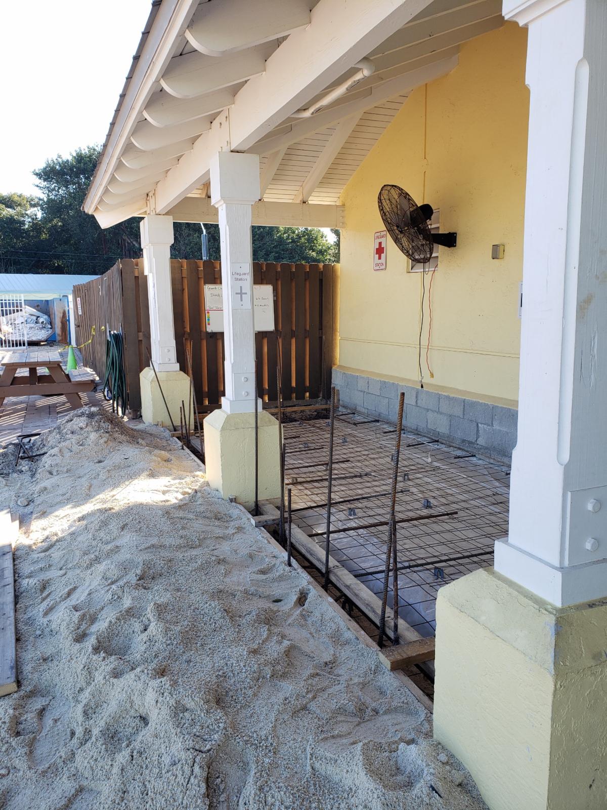 Currently, pool draining and leak detection are underway. Demolition of the locker room tile and flooring has been completed, clearing the way for upcoming renovations. In addition, the concrete pad for the new enclosed Lifeguard First Aid Room has been poured—an important milestone that will enhance safety, security, and emergency response capabilities for our aquatics staff.