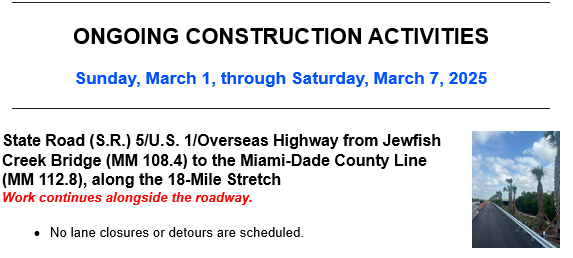 - Repaving of section of FKOHT/shared use path in Lower Matecumbe – Expected to start Summer of 2026.