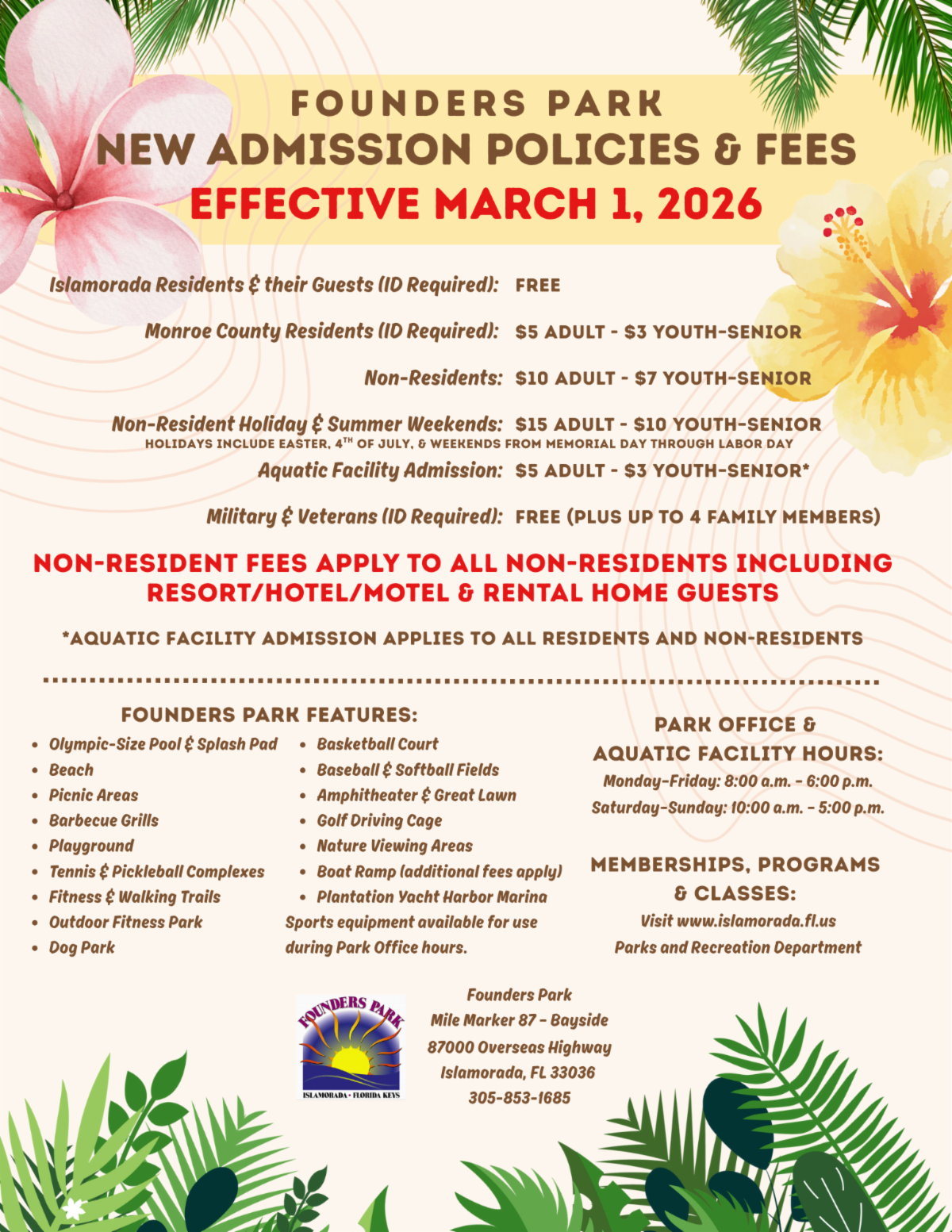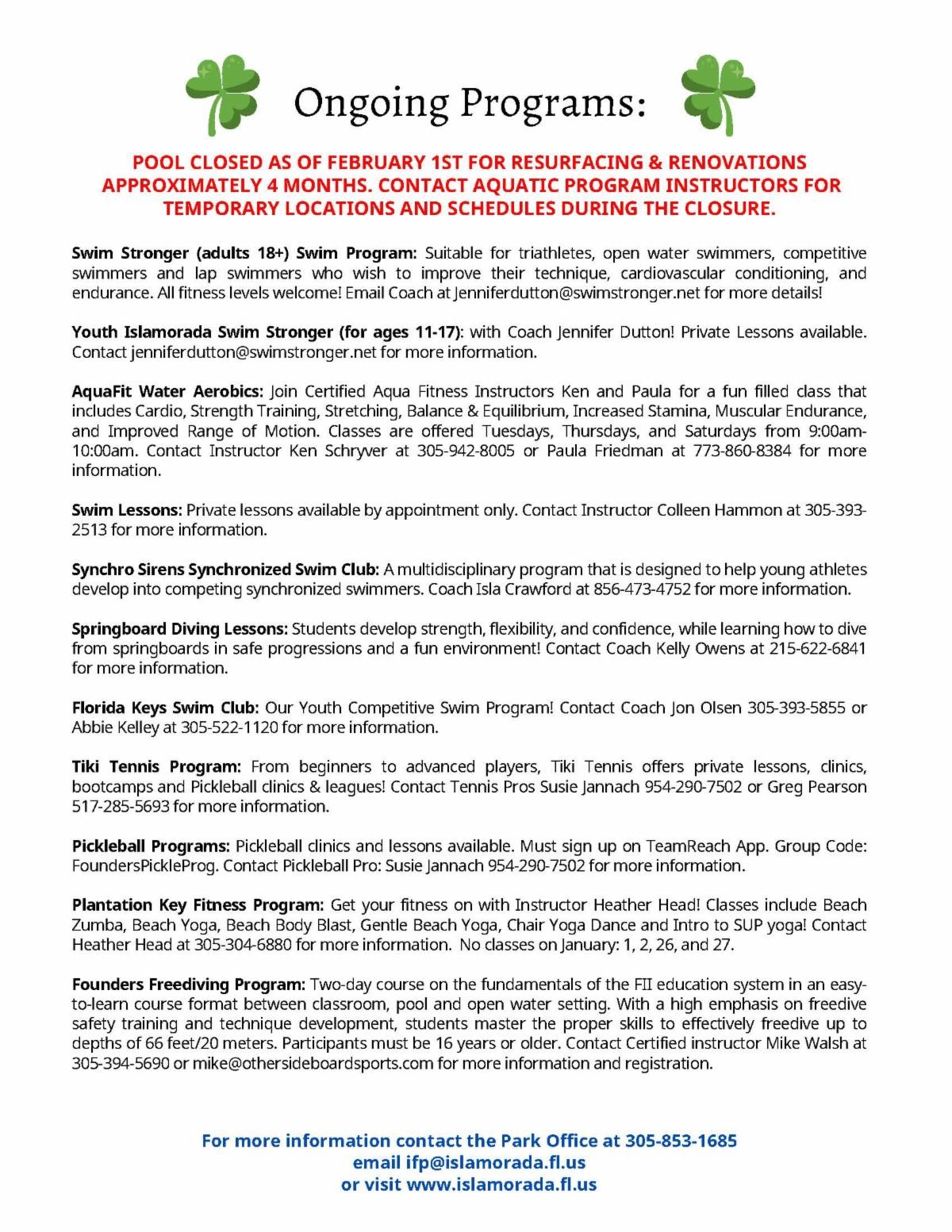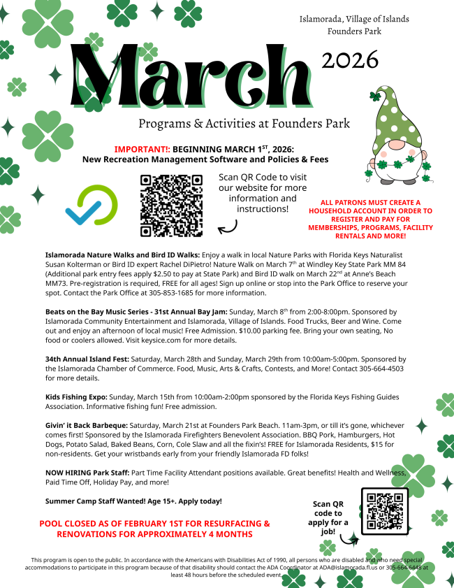 For questions or concerns, please contact the Park Office at (305) 853-1685 or ifp@islamorada.fl.us. Project updates will be available at www.islamorada.fl.us.