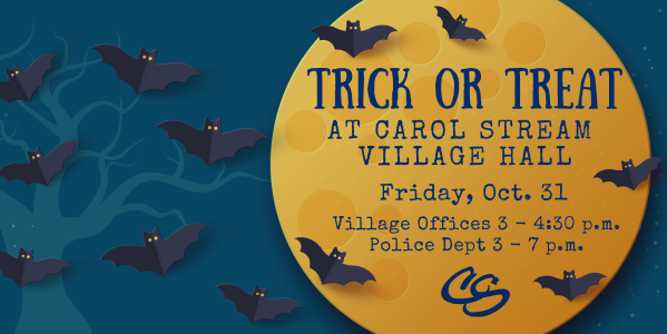 Carol Stream’s community Trick-or-Treating hours are 3:00 to 7:00 p.m. — stay safe, have fun, and enjoy a spooktacular Halloween!