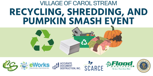 Clear out the clutter and help keep Carol Stream clean and green at the Village’s annual Recycling, Shredding & Pumpkin Smash event. This free drop-off event is open to all DuPage County residents.