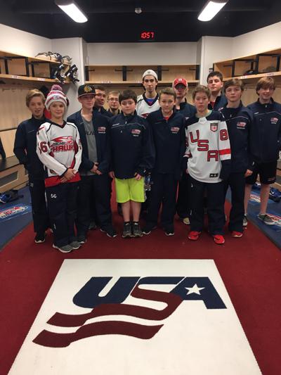 Bantam 3 played in Ann Arbor this past weekend and while there they attended the USA Hockey U18 game vs Princeton. USA Hockey graciously gave the team a tour of their new facility during intermission. Bantam 3 was able to see the team's training facility, including their 10,000 square foot fitness center, the team's video room and classroom. They were also able to tour the U18's locker room but were told not to walk on the logo. The boys enjoyed the tour and thought it was great to see the facility. Bantam 3 really enjoyed seeing the photos of some of the past players to come from USA Hockey's program including Patrick Kane, Brandon Saad, Phil Kessel and Austin Matthews to name a few.
