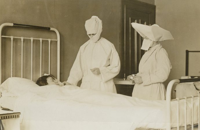 An unknown sister nurses at Carney Hospital in Boston during the 1918 Spanish flu pandemic.