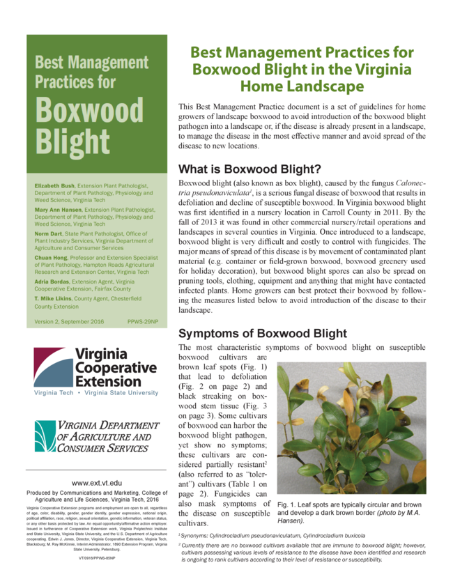 Boxwood blight can be devastating to a landscape and more instances are being found throughout Virginia. The disease affects not only boxwoods, but pachysandra and sweetbox, which are in the same plant family.