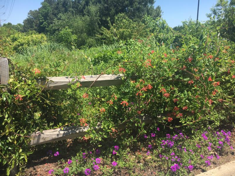 This garden is a public resource for educating citizens about the benefits of a rain garden and native plants. The garden was originally planned as a way to prevent the SPCA parking lot from flooding. The native plants also help filter pollutants that run off the parking lot –important since the swale ultimately goes to the North Landing watershed. Native plants are also providing habitat for wildlife which has increased greatly since the garden was established. The garden is open to the public and is located at the rear of the SPCA parking lot at 3040 Holland Rd. Volunteers are on site on Thursday mornings, April through October.