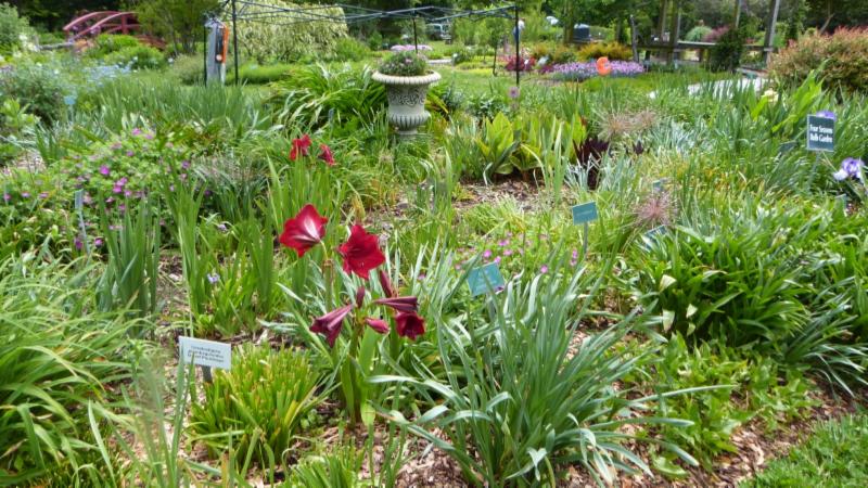 The beds include: Bog/Water Garden Butterfly Garden Children's Garden Daylily and Virginia Hybridizer Daylily Gardens Edible Landscaping Garden Enabling Garden Entry Beds Four Season Bulb Garden Fragrance & Texture Garden Groundcover Gazebo (West) Groundcover Gazebo (East) Groundcover Gazebo (North) Groundcover Gazebo (South) Native Plants Garden Ornamental Grasses Perennials Comparison White Garden Winter Garden