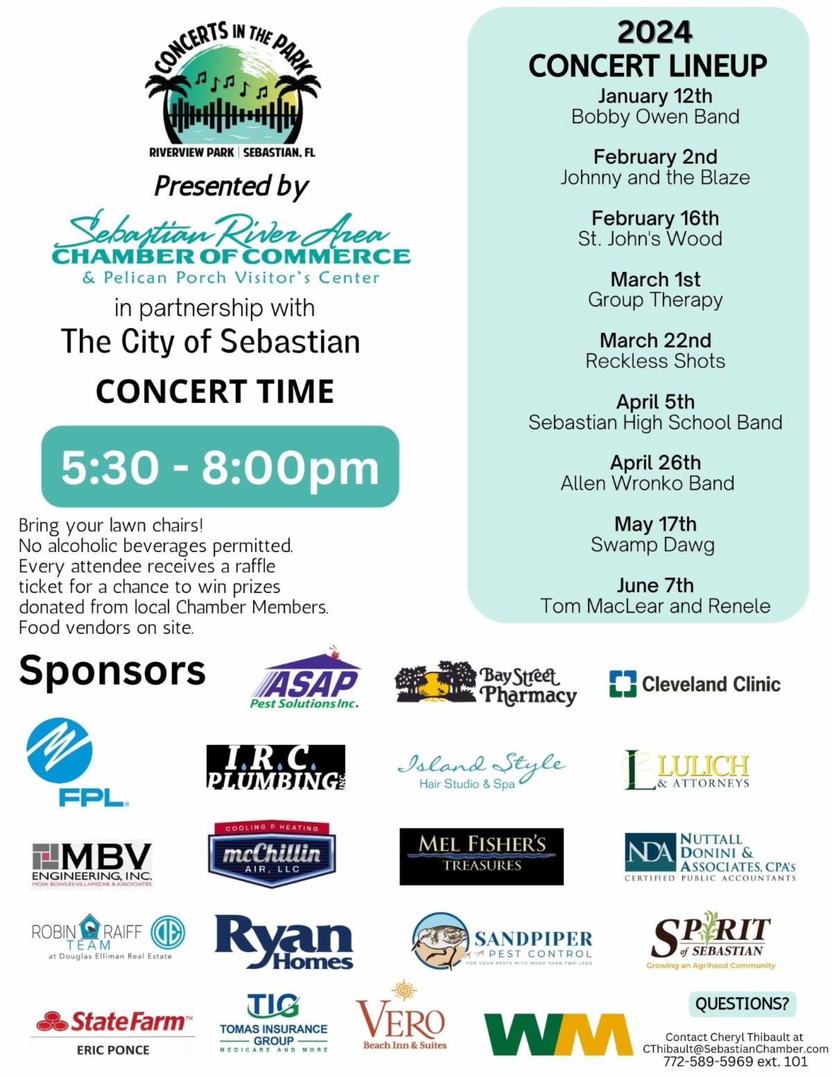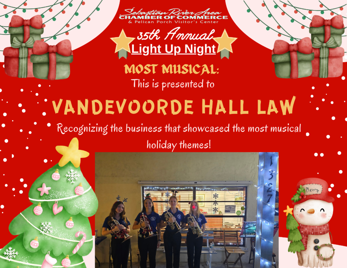 We invite you to please check the events calendar and save the dates for our highly anticipated Networking Events. Be sure to check our website and social media for the latest updates on networking mixers, ribbon-cutting ceremonies for new businesses, and community events happening in Sebastian. We are particularly excited for the Concerts In The Park Series and we hope you are too!