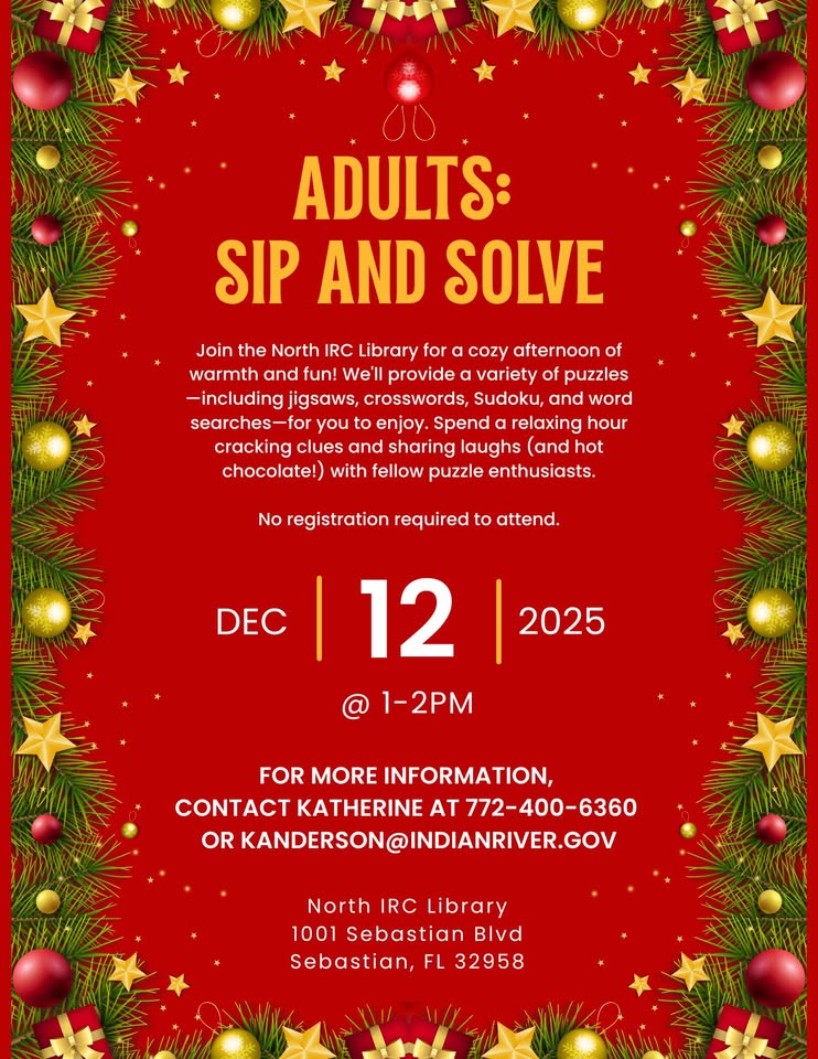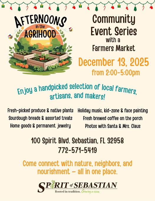 ❄️ December has arrived, bringing comfort, joy, and the magic of the season to the Sebastian River Area! ✨ From cheerful holiday markets like LIGHT UP NIGHT with sparkling light displays to festive concerts, community gatherings, and cozy local happenings, there’s something to warm every heart this month.