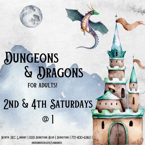 Unleash your inner adventurer! The library is now hosting Dungeons and Dragons sessions just for adults with DM Derek Durrant, owner of Talerand. Whether you're a seasoned player or a curious newbie, come roll some dice, create a character, and embark on an epic quest. It's a fantastic way to socialize, get creative, and experience the thrill of tabletop role-playing in a relaxed and welcoming environment.