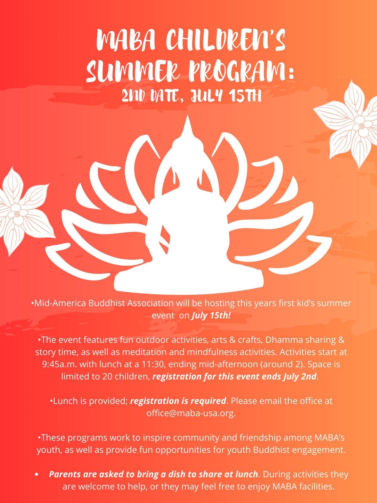 This program work to inspire community and friendship among MABA's youth, as well as provide fun opportunities for youth Buddhist engagement.