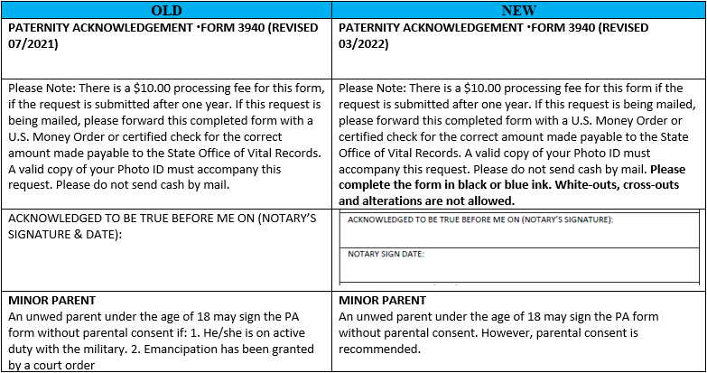 REVISED PATERNITY ACKNOWLEDGEMENT FORM 3940