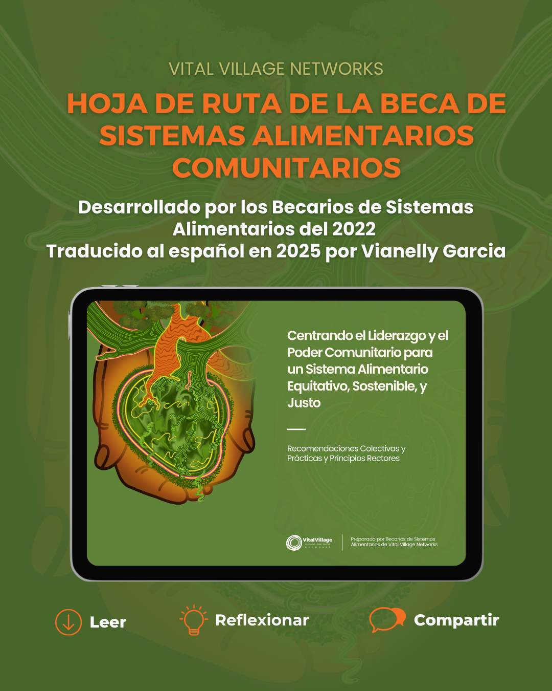 Vital Village Networks is excited to share that Centering Community Leadership and Power for an Equitable, Sustainable, & Just Food System is now fully available in Spanish. Originally developed by our 2022 Community Food Systems Fellows—a national cohort of grassroots leaders—this roadmap offers strategies to address systemic barriers, uplift local traditions and innovations, and center those most impacted by inequities. These collective recommendations aim to move communities from margin to center, fostering equitable, resilient, and community-powered food systems across Turtle Island.