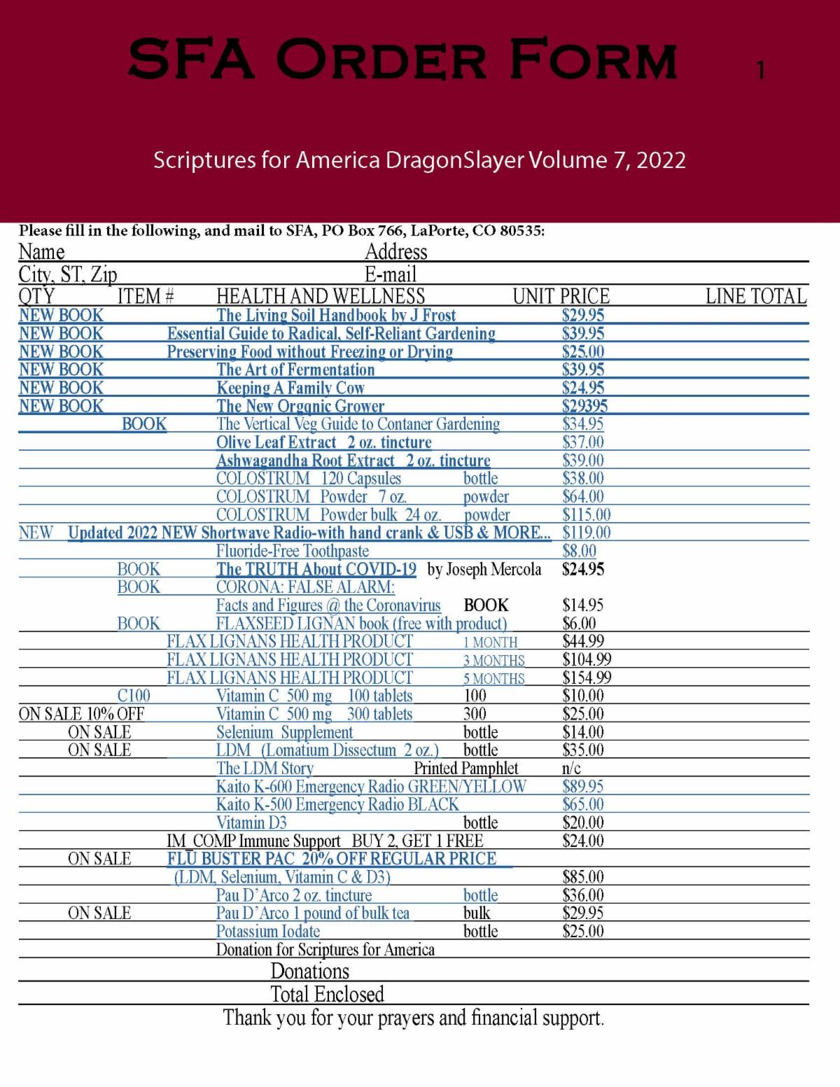 Also, if you are listening in on Short-wave radio, please let me know on what frequency and at what time you are listening and the quality of the signal. You can email Jason@sfaw.org or call and leave a message at the office 307-742-7582, or write to; SFA Attn: Jason, PO BOX 766, LaPorte CO 80535.