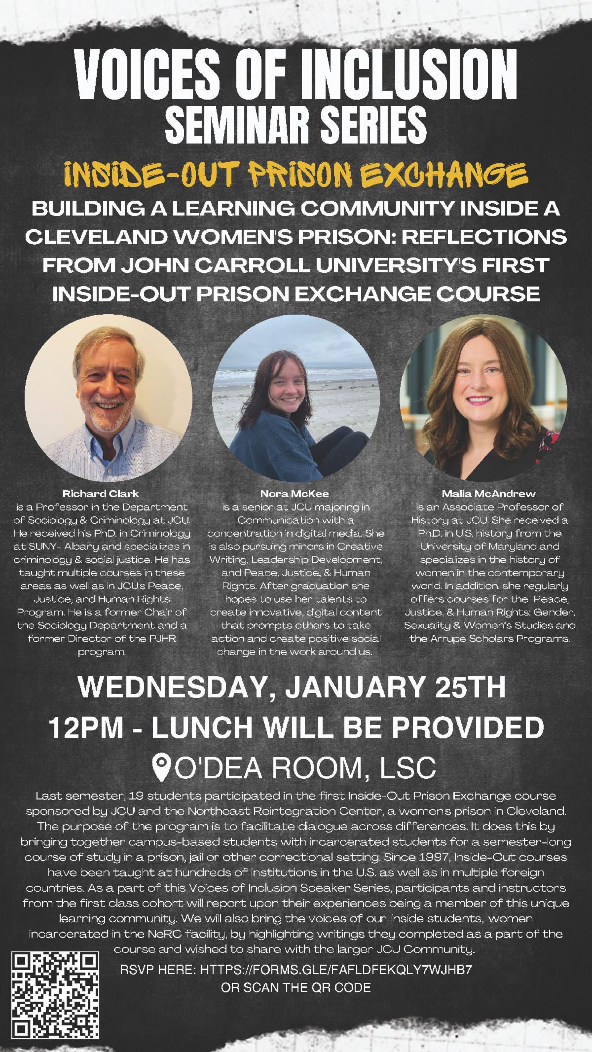 Inside-Out Lunch Event: Voices of Inclusion Seminar Series - Wednesday, 1/25, 12-1PM in the O'Dea Room; Lunch Provided!