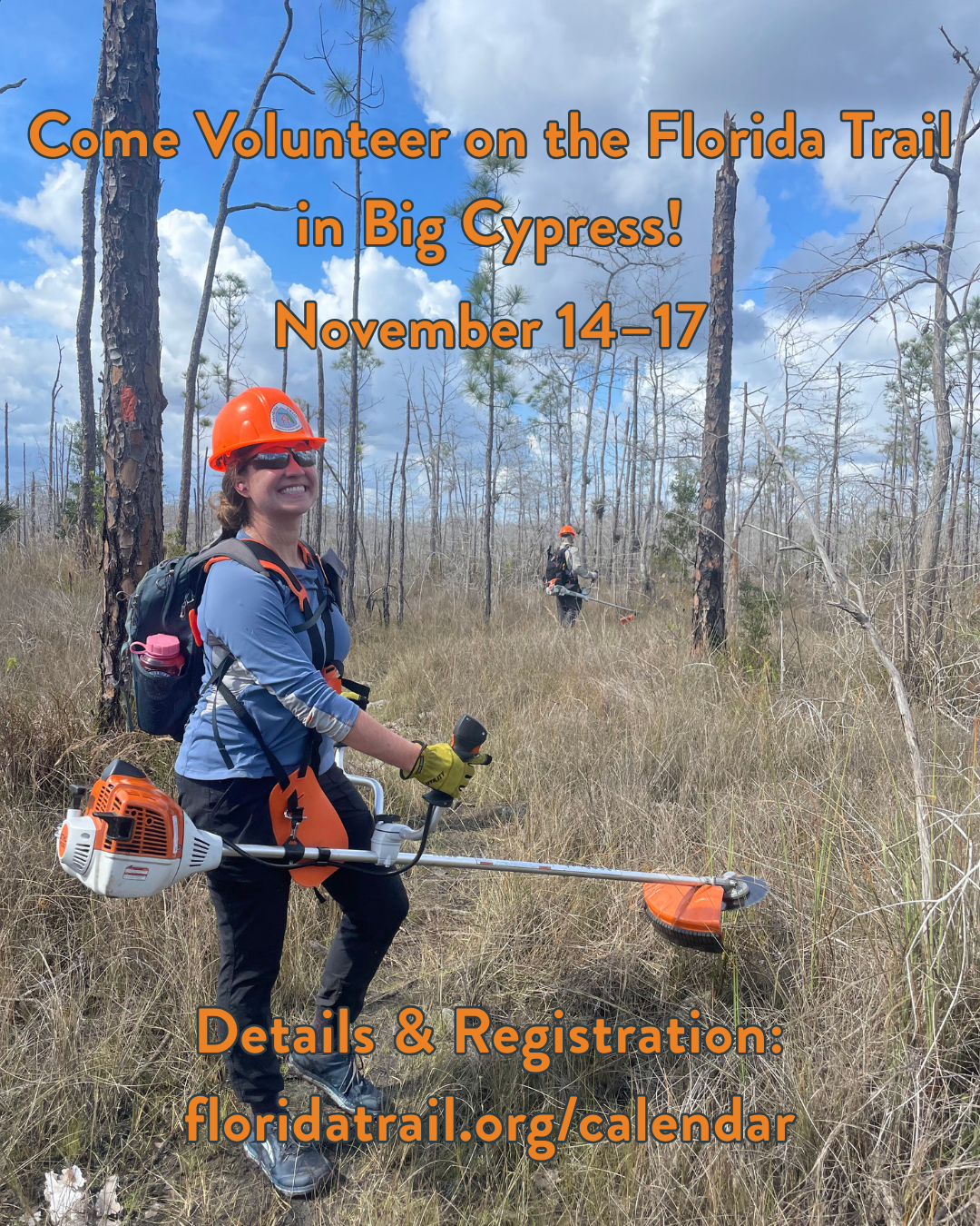 Come join the Happy Hoofers Chapter of the Florida Trail Association for a trail maintenance weekend in Big Cypress National Preserve, November 14–17!