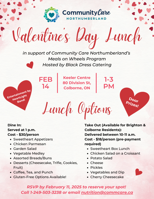 February 14 - Valentine's Day Lunch Fundraiser for Meals on Wheels