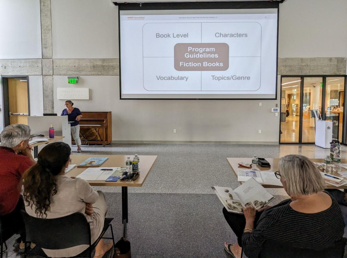The first in a series of literacy coach volunteer workshops this school year hosted by AARP Experience Corps.