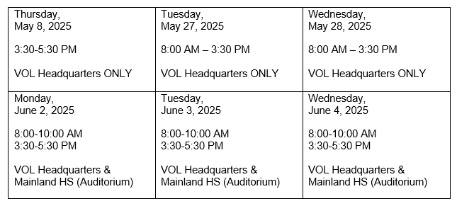 Students testing at VOL HQ who have 504/IEP accommodations will be tested on the following dates: