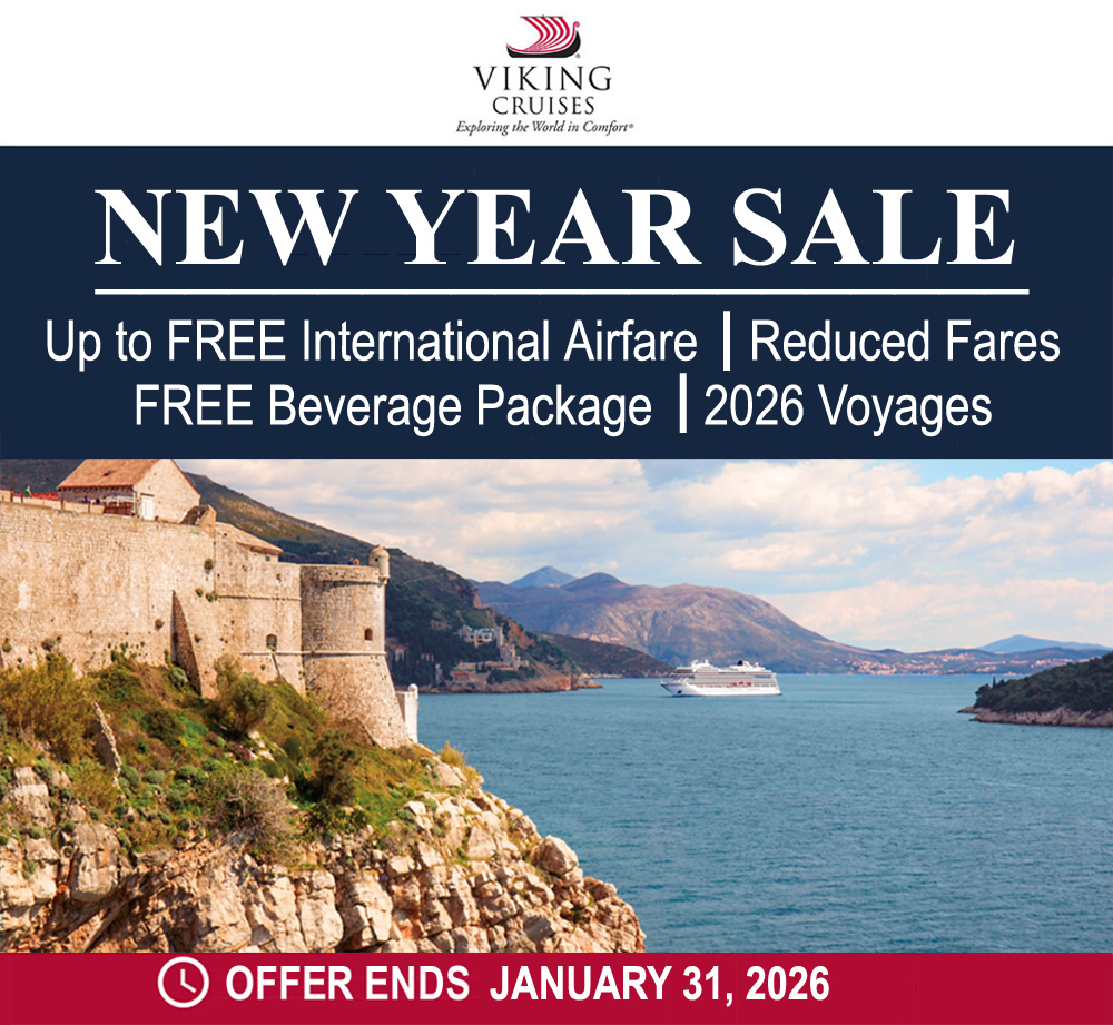 Offer valid on bookings made by January 31, 2026. FREE International airfare, FREE beverage package & reduced fares only applicable to select departures of select featured itineraries during stated sailing period. Offer is based on inventory availability at time of purchase. 2026: Pay in full at the time of booking. Free and Reduced Air offers not valid when booked from gateways in Alaska, Hawaii, Puerto Rico, or Mexico. Reduced Air offers vary by selected Air gateway in country of residence. Airfares may vary on other gateways & departures. Air does not have to be purchased to receive cruise\cruisetour offer. Prices are based on double occupancy for US and CA residents only. Offer may be withdrawn at any time without prior notice. All fares reflect cruise taxes, port taxes and fees. Not combinable with group contract pricing. Additional restrictions may apply.