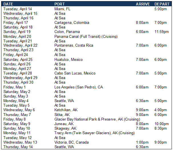 21-night Panama Canal Pathway