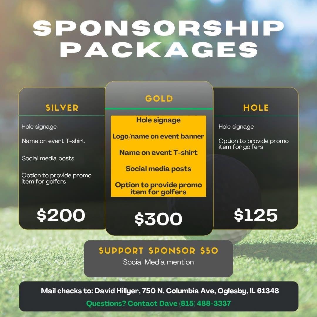 Sponsorship opportunities are also available, with packages ranging from a $50 Support Sponsor to a $300 Gold Sponsor, offering businesses and individuals multiple ways to support the outing. Sponsors receive benefits such as hole signage, recognition on event materials, social media mentions, and the chance to provide promotional items for golfers.