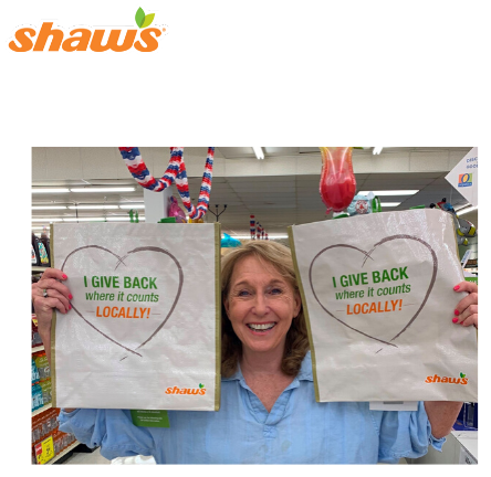 GIVE BACK WHERE IT COUNTS Bag at the Shaw's store located at 14 West Boylston Street, Worcester