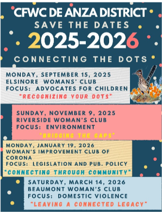 Whether you’re a new member or a seasoned leader, we encourage you to attend and mingle with your fellow club sisters from across Riverside and Imperial Counties. These conferences are designed to inspire, educate, and build stronger bonds throughout our district. Mark your calendars — more details, including dates and locations, will be shared soon. We can’t wait to see you there!