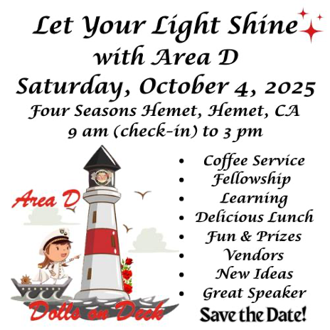 Right after our Kick-off Brunch and the USO Volunteer efforts, the club will turn its attention to the De Anza District Conference on September 15th, which the Elsinore Women's Club will host. You don't want to miss the opportunity to attend. It's a great time to learn, network, and make new friends.