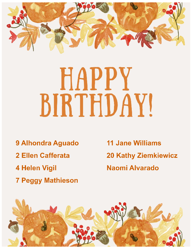 | | National Day of Service - DV | Birthdays & Anniversaries | |