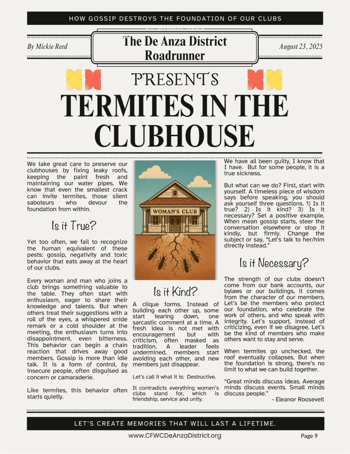 Please send articles, questions, and corrections to Editor Lorelei Ceja at editor@womansclubofindio.org.