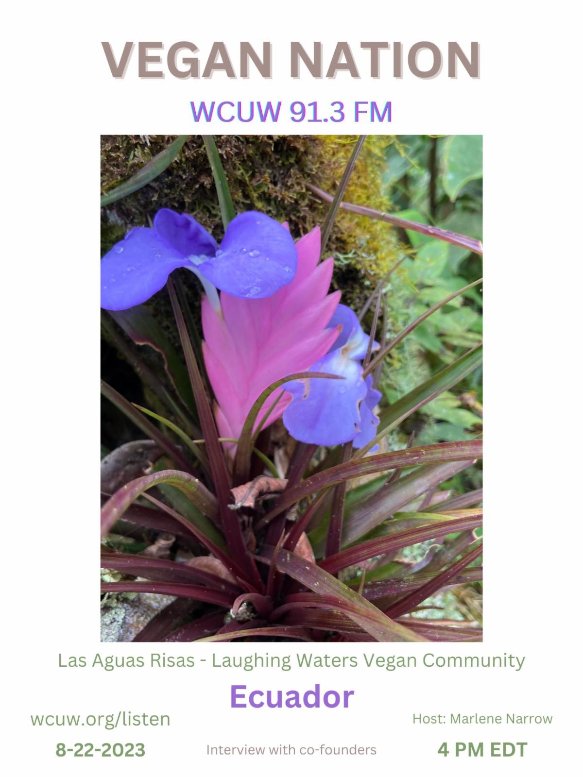 Las Aguas Risas - Laughing Waters Vegan Community is a veganic permaculture fruit forest intentional community and forest reserve in the high Amazon Rainforest in Ecuador. Co-founders, Terry Chretien & Michael Dance.a married vegan couple),