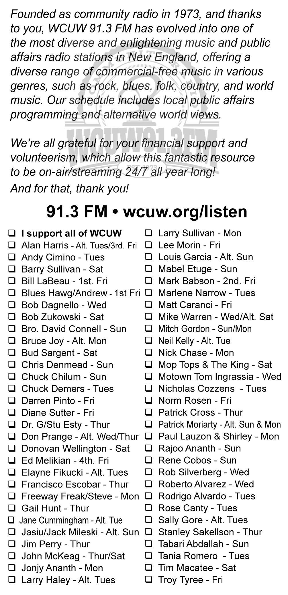 for you keeps WCUW moving forward! And thank you!