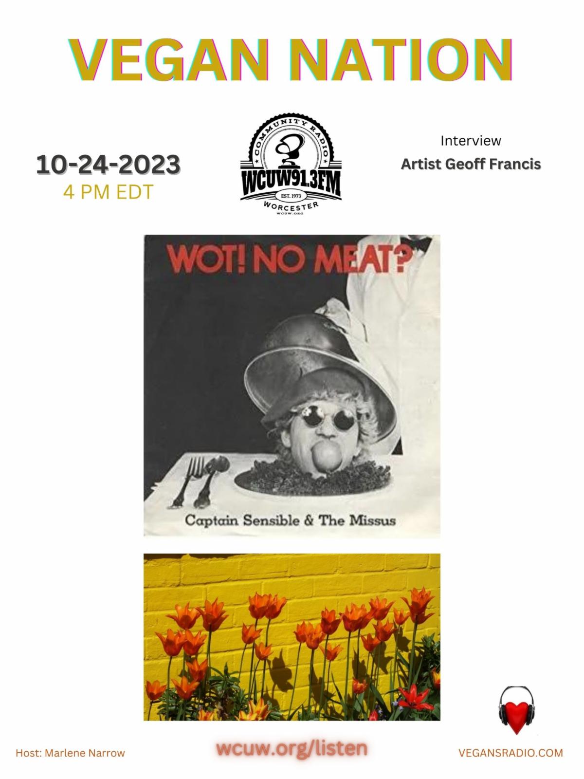 Geoff Francis joins us for a Vegan Nation interview from Portugal. Geoff is an artist and has been a vegan for 52 years. Geoff has had a long-term involvement with Animus Records, established a chain of record shops in London's West End, and opened three shops in Baker Street, including a vegan restaurant. (Photo by Geoff Francis)