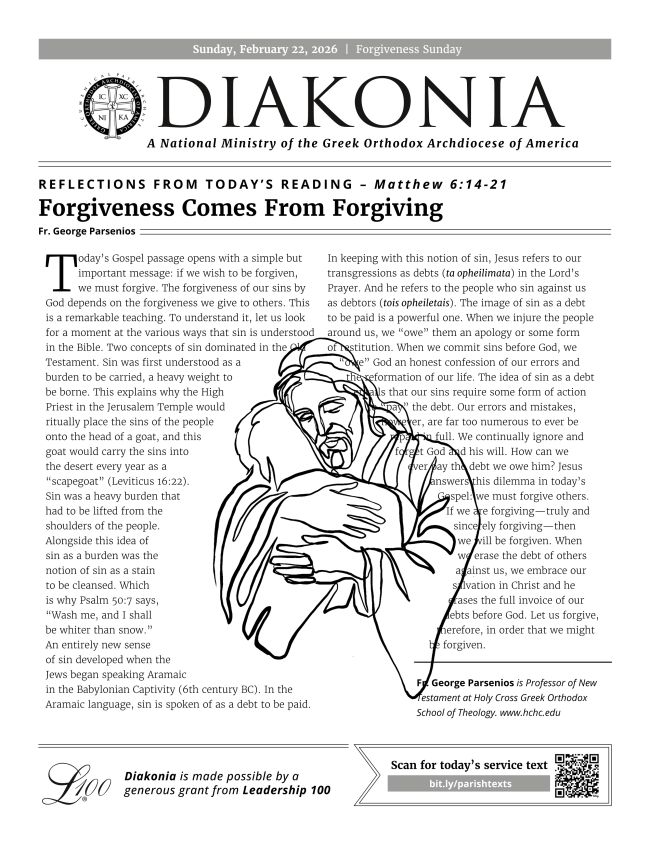 Ἐκ τοῦ Κατὰ Ματθαῖον 6:14-21 Εὐαγγελίου τὸ Ἀνάγνωσμα