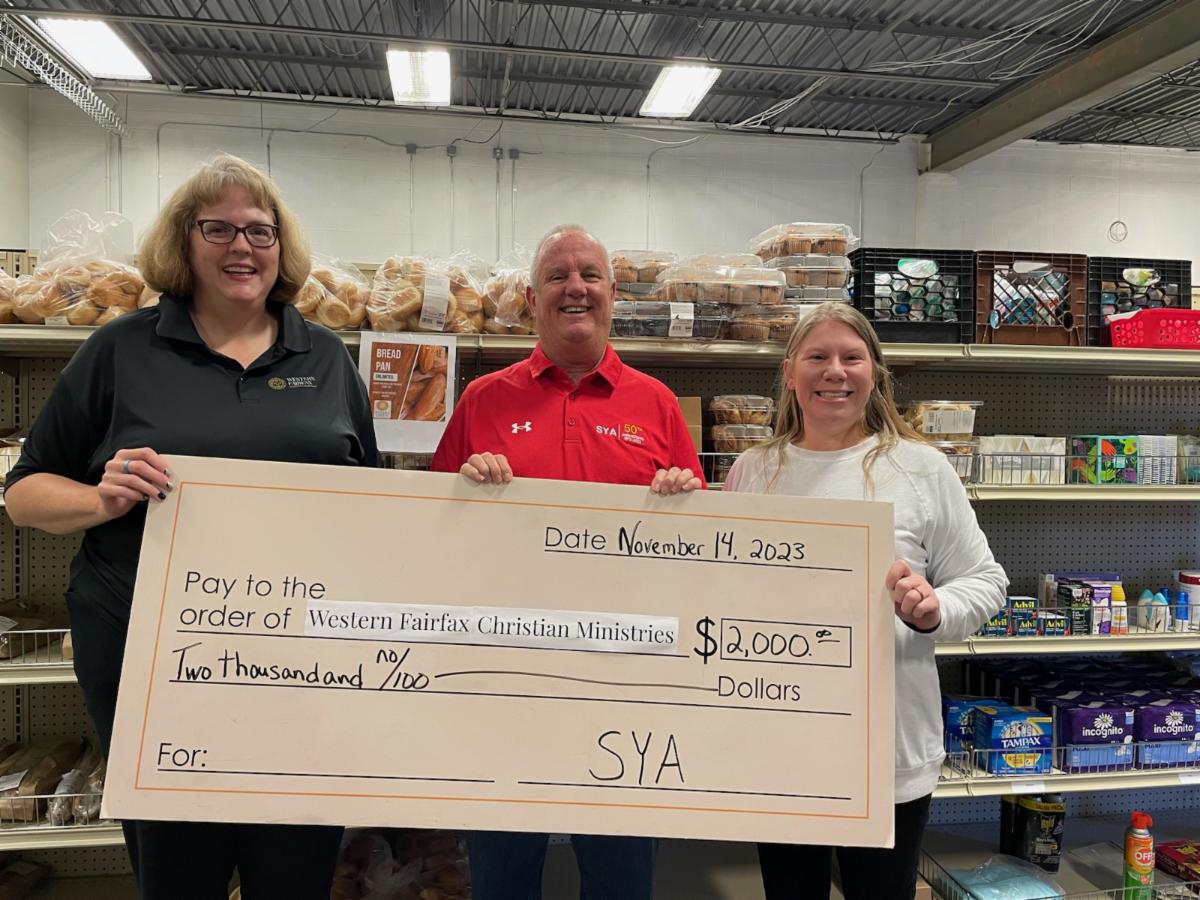 Over the last 30 years, SYA has donated thousands of pounds of food and supplies to WFCM through various food drives and continues to look for ways to be a good neighbor. SYA and WFCM serve critical roles in western Fairfax County, strengthening families and improving the health and wellbeing of our community, as they are both trustworthy and positive resources.