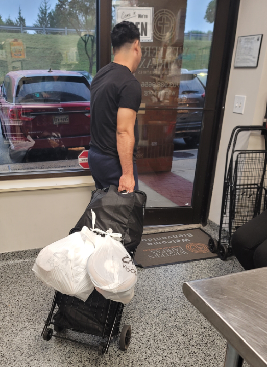 This is at a time when more than 600 families are using our client choice food pantries each month. A new client, Hussein, has been using the Centreville Client Choice Food Pantry since July. He recently immigrated from Columbia. Hussein walks from his apartment to our pantry and brings home his family's groceries using the handcarts we provided to him during his first visit. He told our staff how much he appreciates selecting food at the food pantry. "I do not have to go to the grocery store and spend a lot of money on food, I can come here, get groceries, and use the money for my family for housing and other bills and to keep adjusting to life in this country."