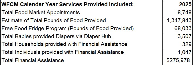 Happy New Year! I am so thankful for each of you who helped us to close out the calendar year strong with a big holiday food/school's out food distribution December 20 (continuing Dec 22-23) that served 547 families, keeping our refrigerators and shelves stocked as we continued to serve families through December 31st, and with your generous calendar year-end donations that exceeded our goal and ensure we can start this new year in a position to continue to meet the needs of community members during these cold winter months. Thank you!