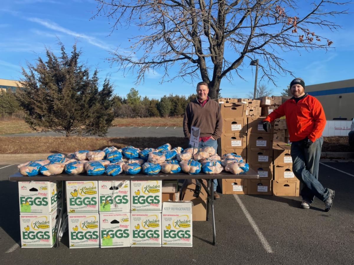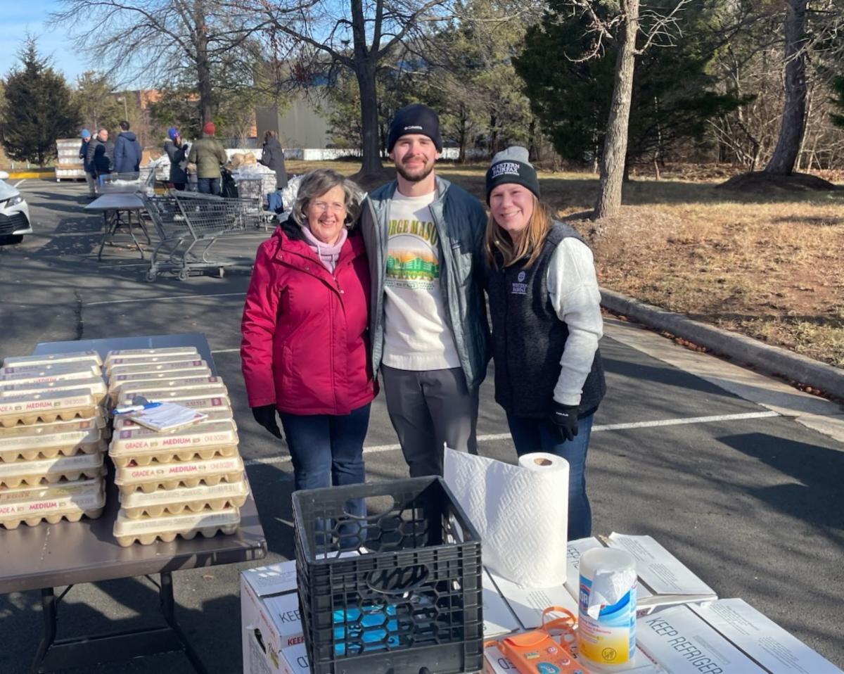 Photographed above L to R - Sully District Supervisor Kathy Smith, Kris A., District Aide to Congressman Walkinshaw, and me distributing eggs during the December food distribution