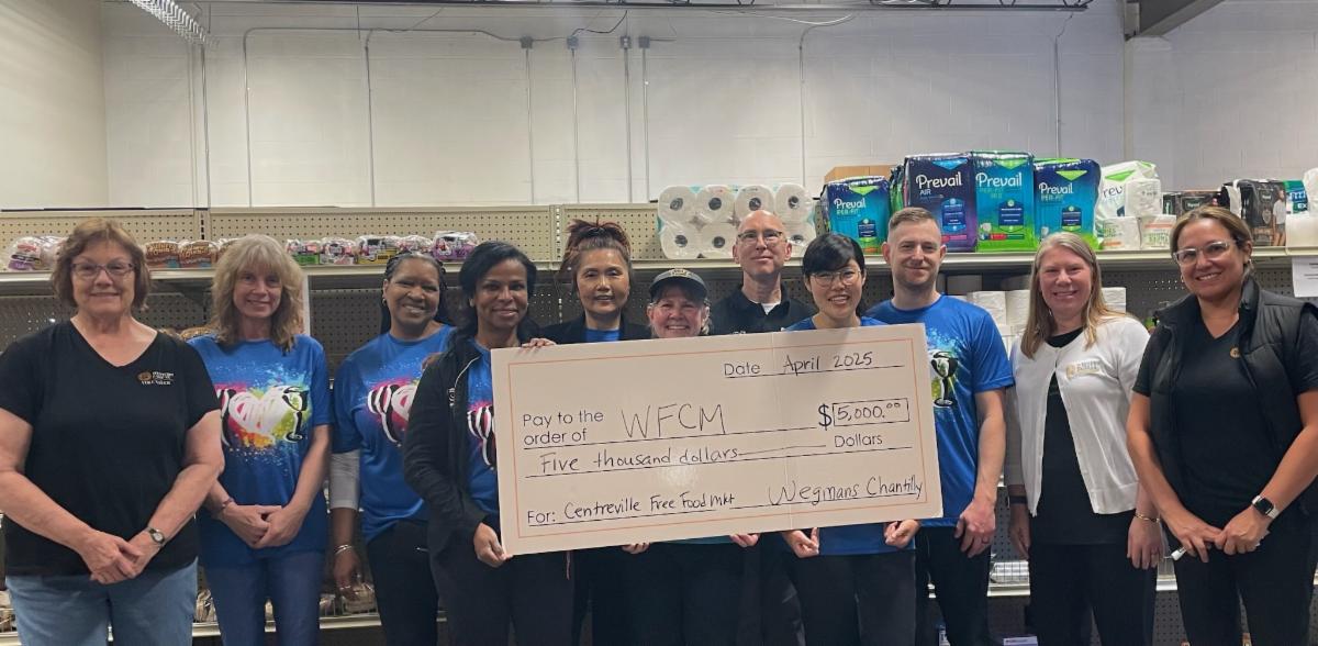 It takes many partners working together to serve families in our community in need of assistance. During the month of April, Wegmans Chantilly donated $5,000 for our Centreville Free Food Market operations and an additional $5,000 in gift cards to stock our shelves!