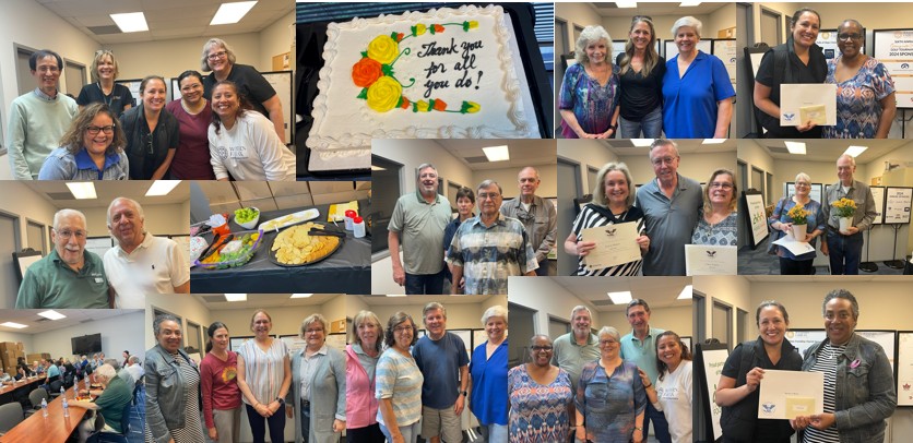 In addition to partners, it takes many hands to serve hundreds of families each month. During National Volunteer Appreciation Week, WFCM staff members, led by our Food Market & Volunteer Services Manager, recognized the service of the 110+ volunteers who serve weekly at WFCM picking up grocery store donations, stocking shelves, and bagging groceries during day and evening shifts Monday - Friday (and one Saturday each month). These volunteers served for 11,400 hours in calendar year 2024; and 42 volunteers who served for more than 100 hours each were awarded the President's Volunteer Service Award. Four volunteers served for more than 250 hours each and earned the Silver PVSA. Thank you to each of these dedicated individuals!
