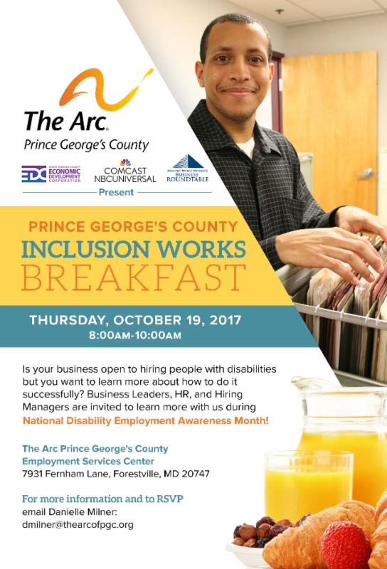 Is your business open to hiring people with disabilities but you want to learn more about how to do it successfully? Business leaders, Human Resources and Hiring Managers are invited to join in the discussion tomorrow morning from 8:00am - 10:00am at The Arc of Prince George's County Employment Services Center located at 7931 Fernham Lane in Forestville, MD 20747.