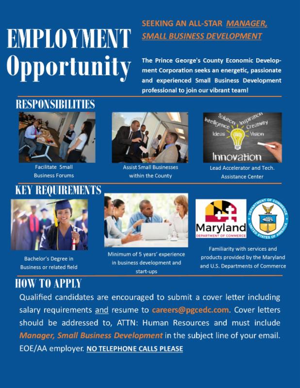 The Prince George's County Economic Development Corporation is looking for a New Manager for Small Business Development!